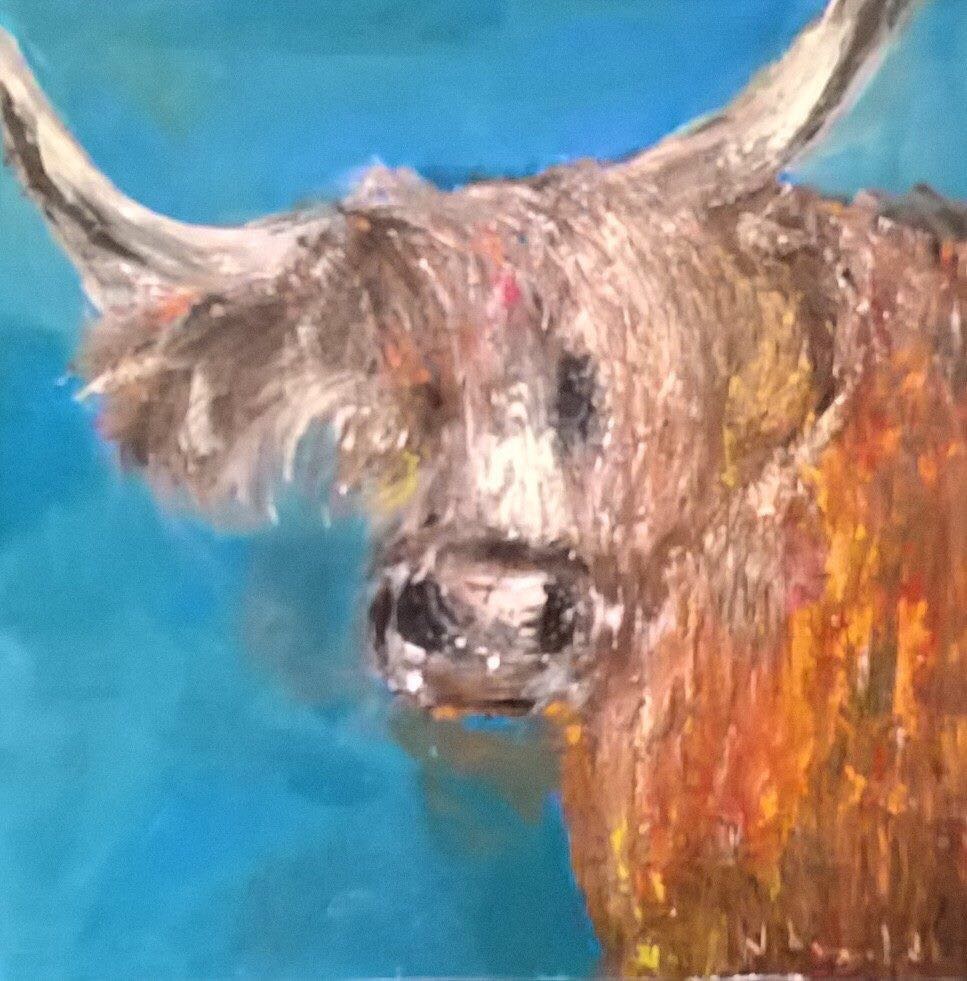' Highland cow' oil paint 90x90cm