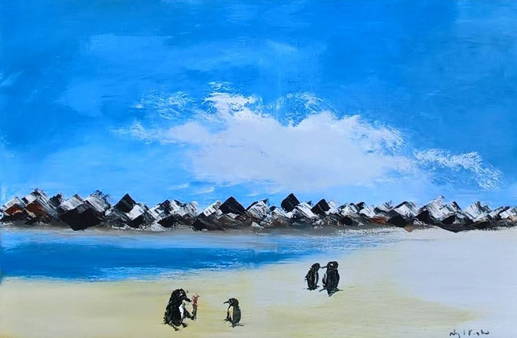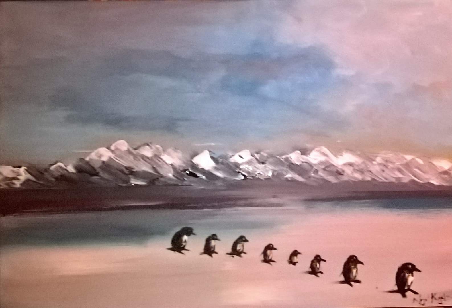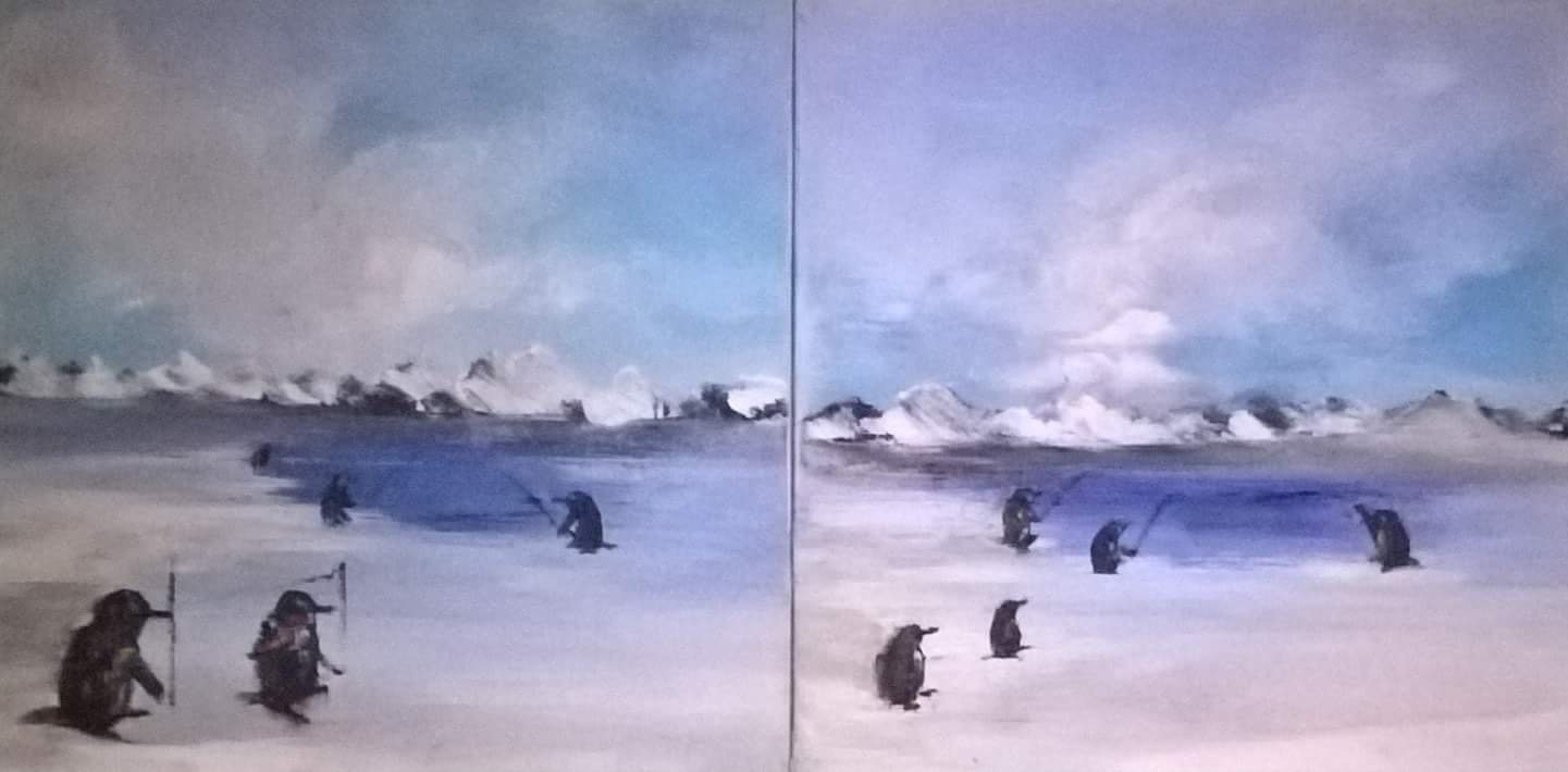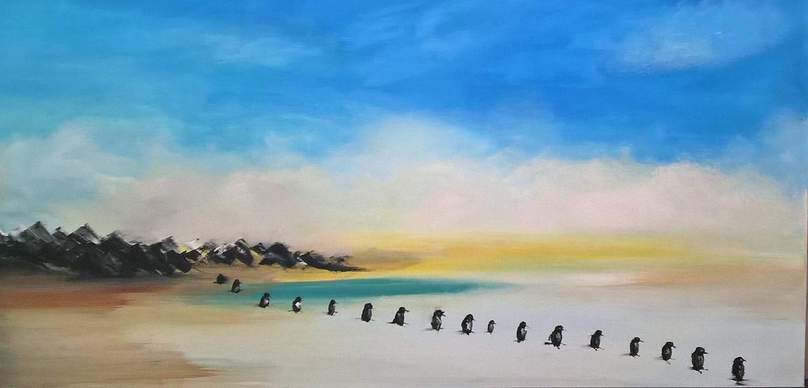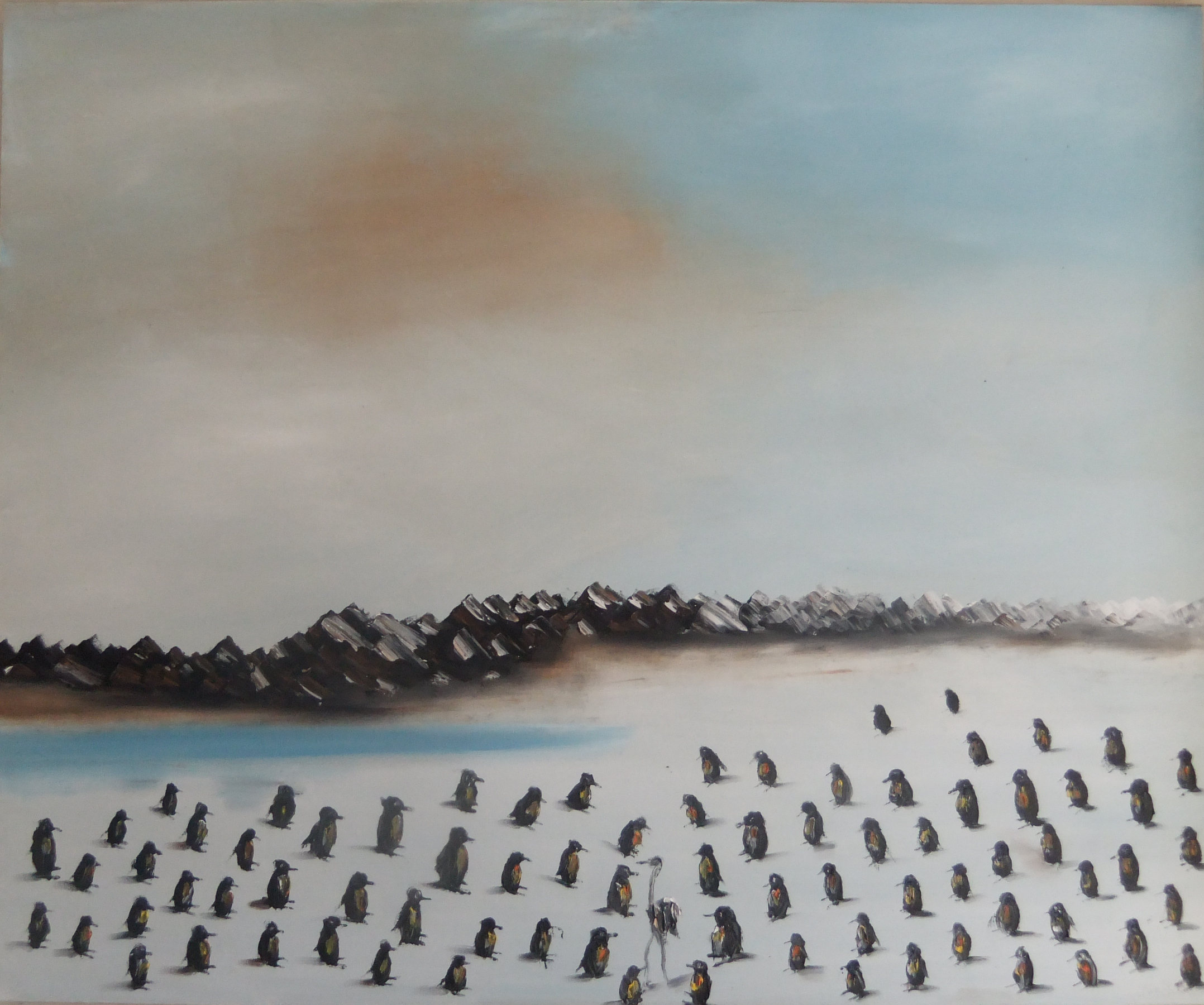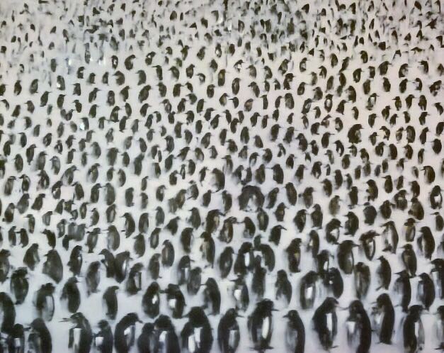 'colony of penguins' oil paint. 100x120cm