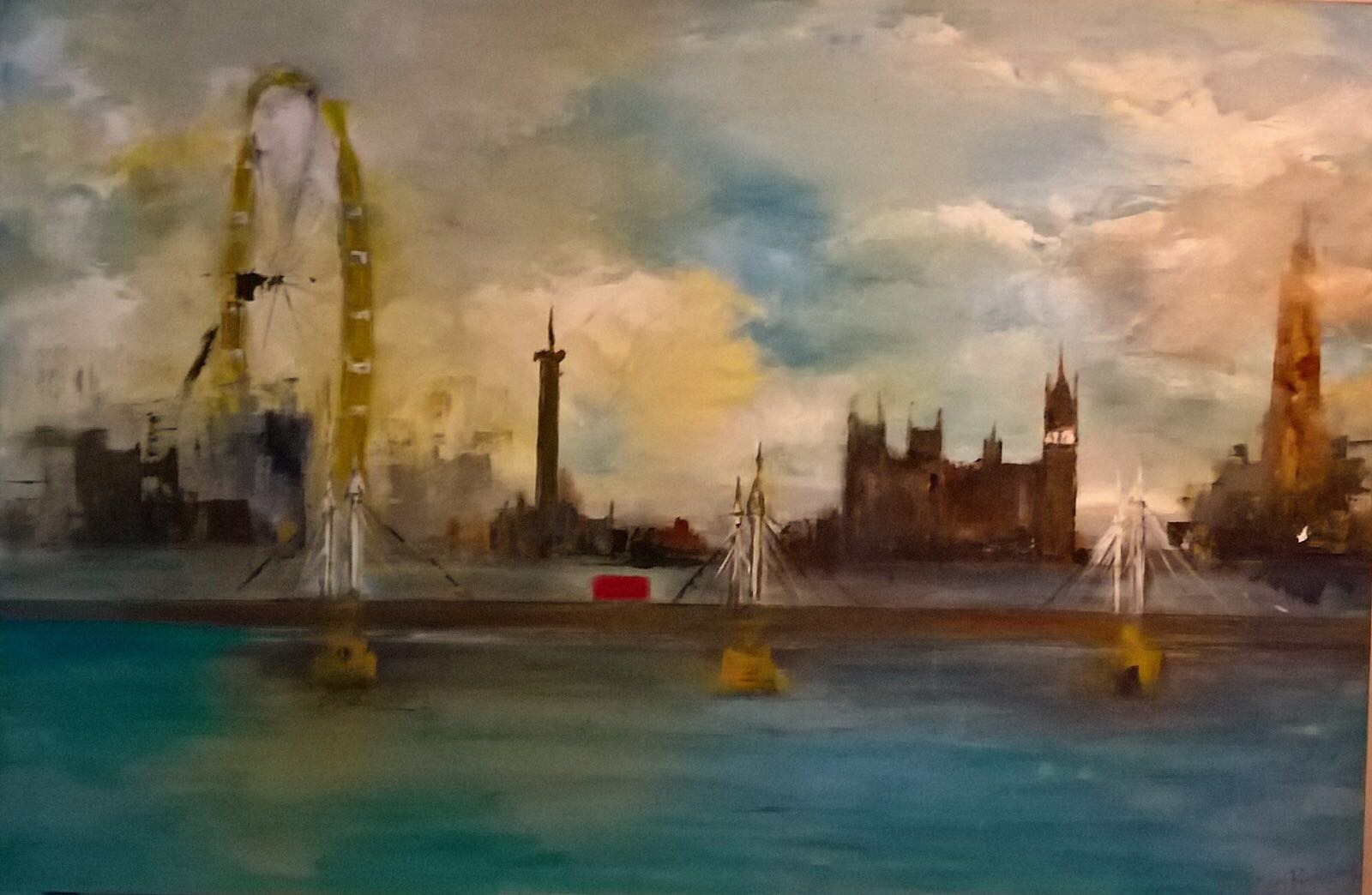 'Another view of London 3' oil paint / gloss paint. 150x75cm